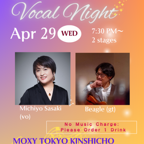4/29 (水祝) 7:30pm~ モクシ―東京錦糸町ロビーラウンジでビーグル(gt)さんと2回目の共演です。前…