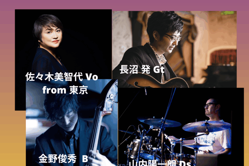 今回初めてご一緒するのが、札幌きっての人気ギタリスト長沼タツルさんと、メジャーアーティストのサポートバンドメンバーとして全国を飛び回っている凄腕ドラマー山内陽一朗さん。そして札幌組には欠かせないいつものベーシスト金野俊秀さんです。